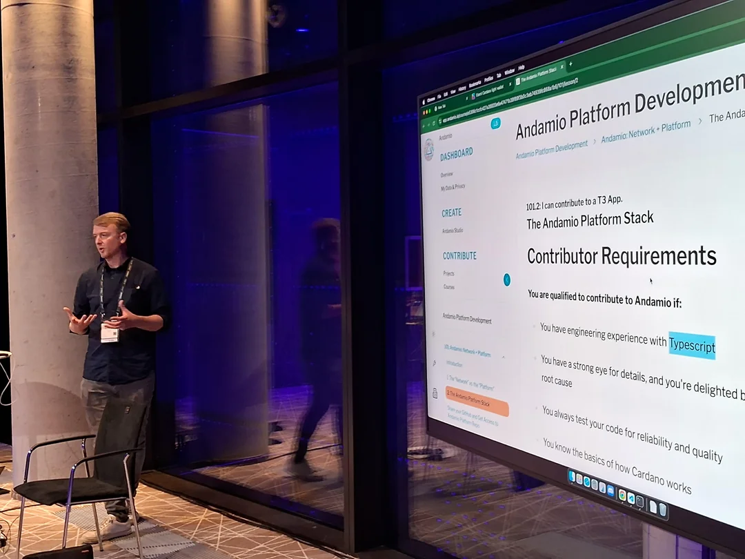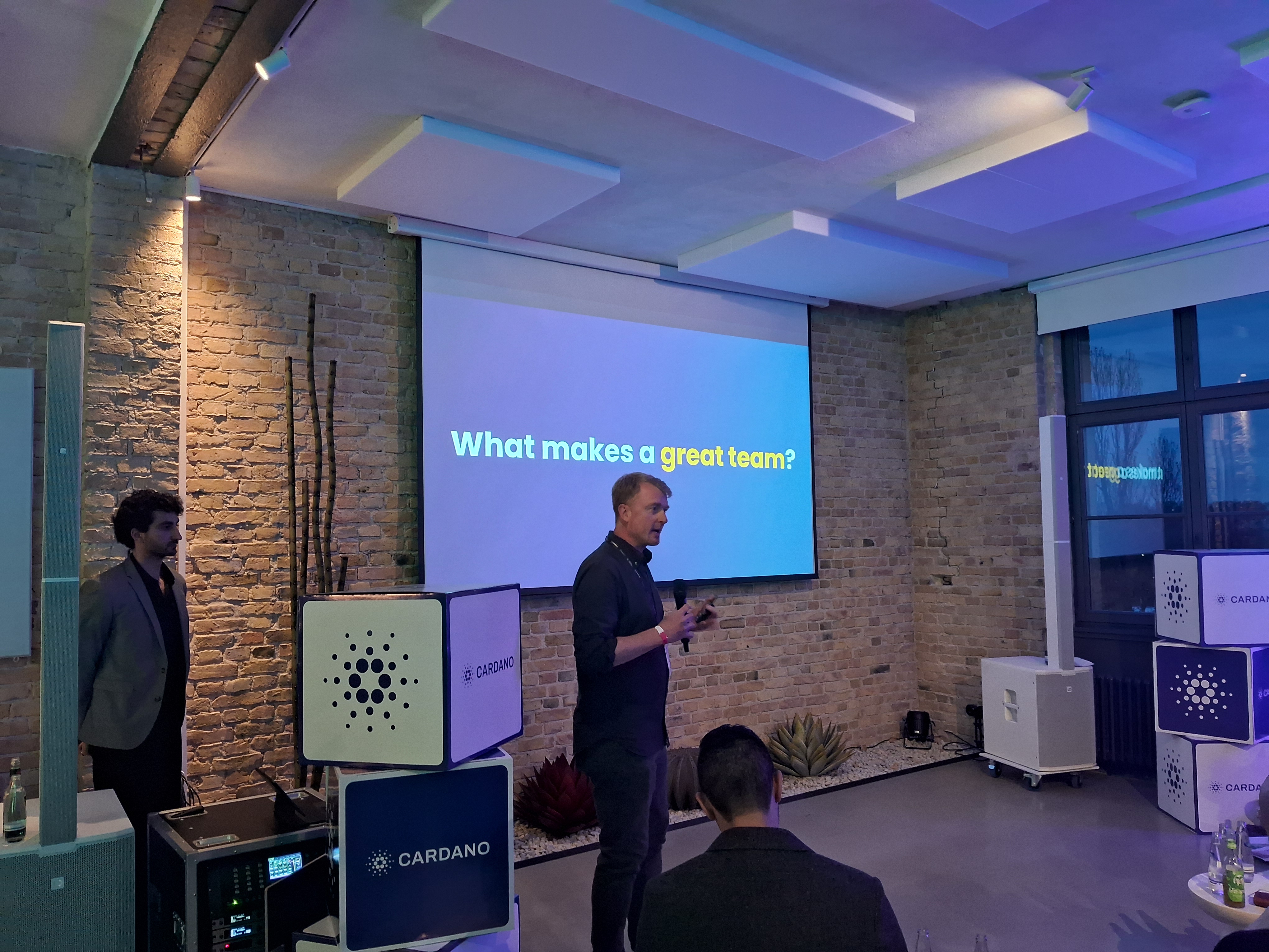 Cardano Summit Berlin. Left to right: Fabian Bormann (CF Ecosystem Engineering); Sebastian Pabon (Andamio cofounder); James Dunseith (Andamio cofounder).