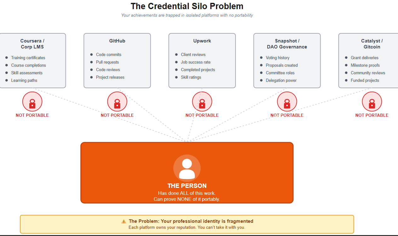 In none of these cases is anyone waiting for a government standard. The credentials are being issued by employers, by platforms, by communities. They’re just locked in silos. Not verifiable. Not portable. Not interoperable.